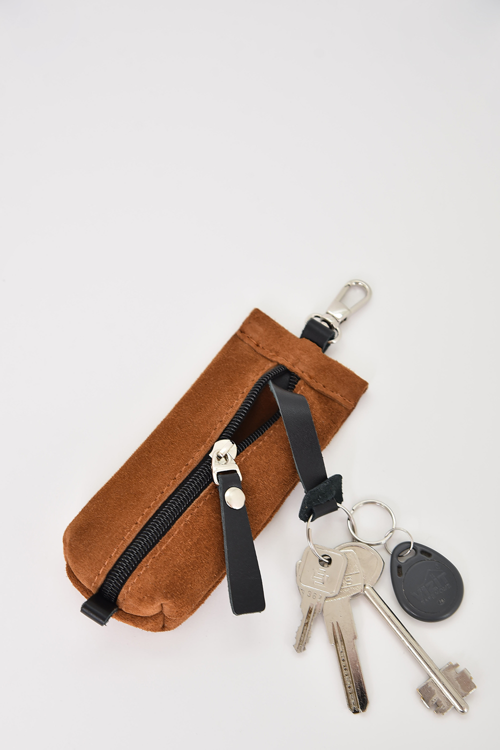 Ключница из натуральной кожи. Застегивается на молнию и имеет одно отделение. Чехол имеет внешнее крепление на карабин. Пуллер молнии выполнен из кожи. Внутри чехол имеет кольцо для крепления ключей на кожаной петле.