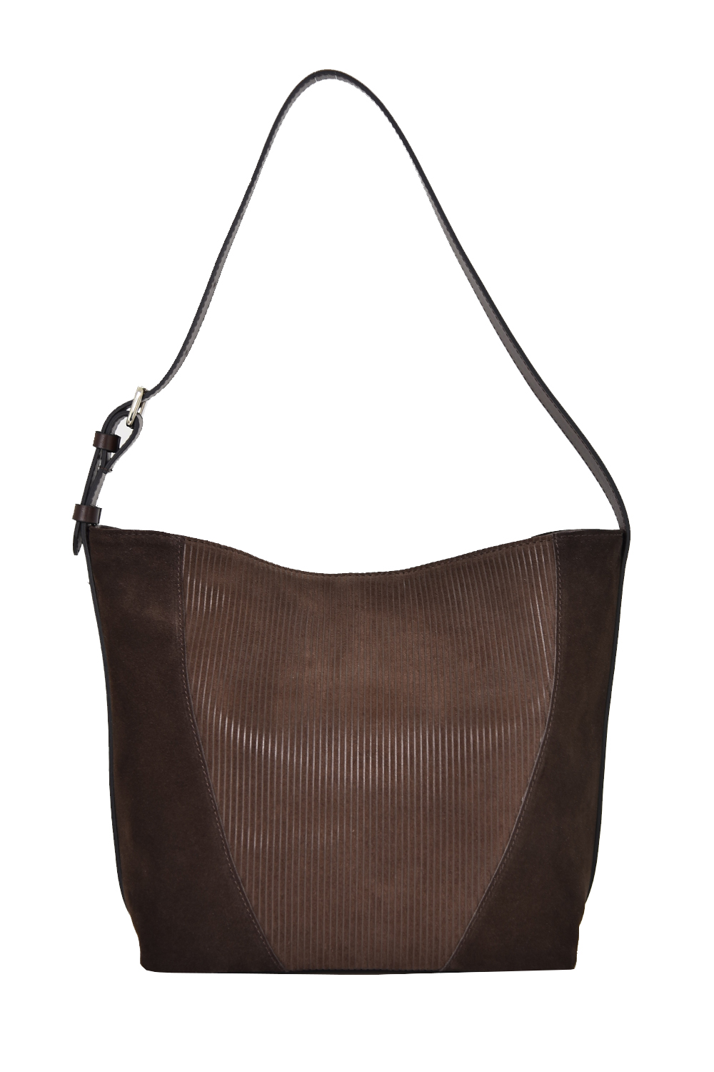 Сумка женская со съемным регулируемым ремнем через плечо, застегивается на молнию и имеет одно отделение. На задней стенке расположен карман для мобильного телефона. Сумка на подкладке. Внутри сумка имеет карман на молнии и карман накладной карман на молнии "карман в кармане" из плотного материала. Металлические ножки для защиты дна сумки