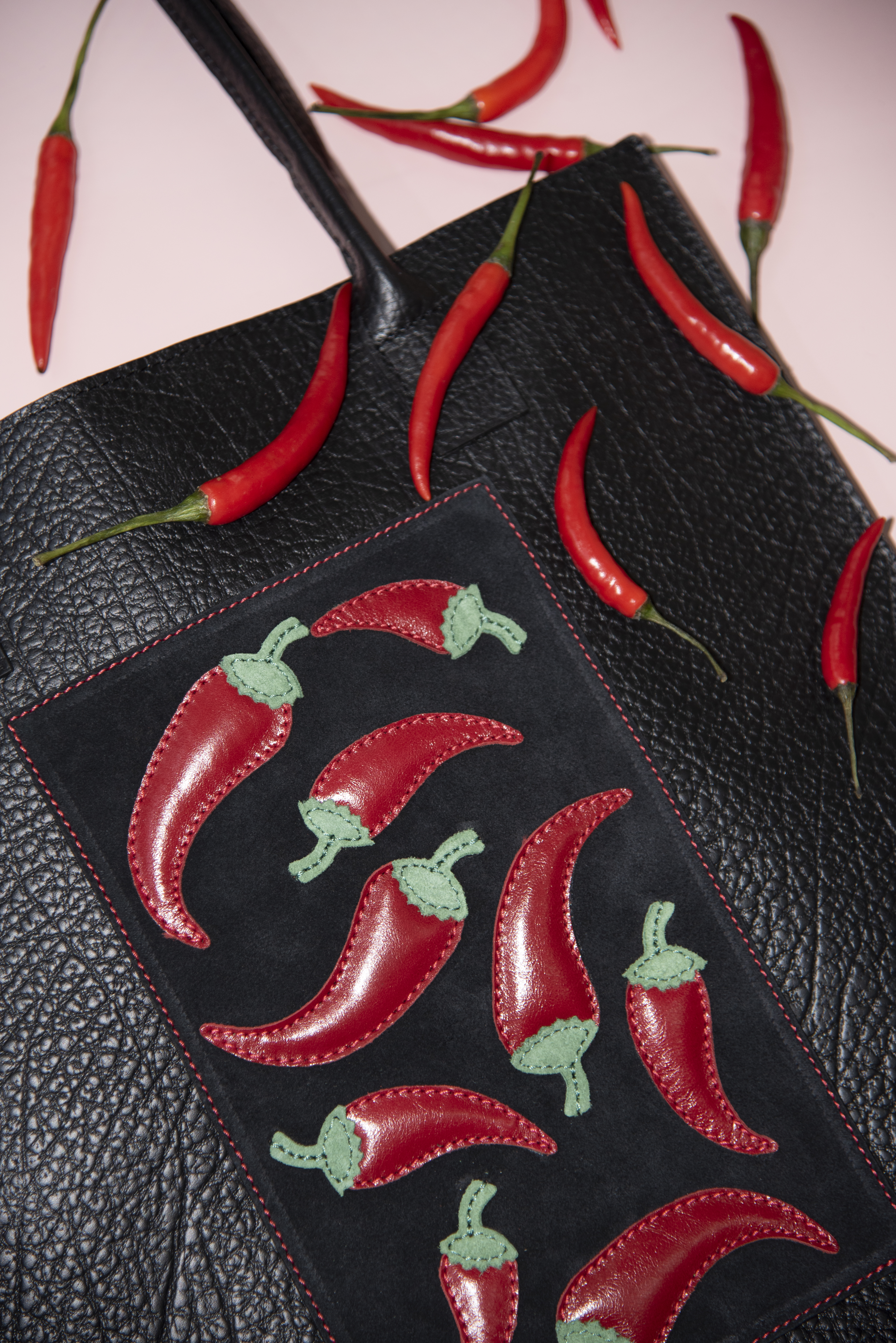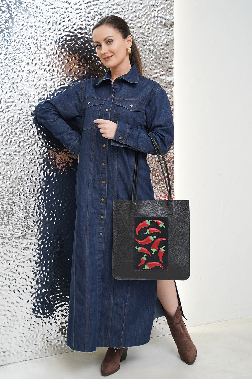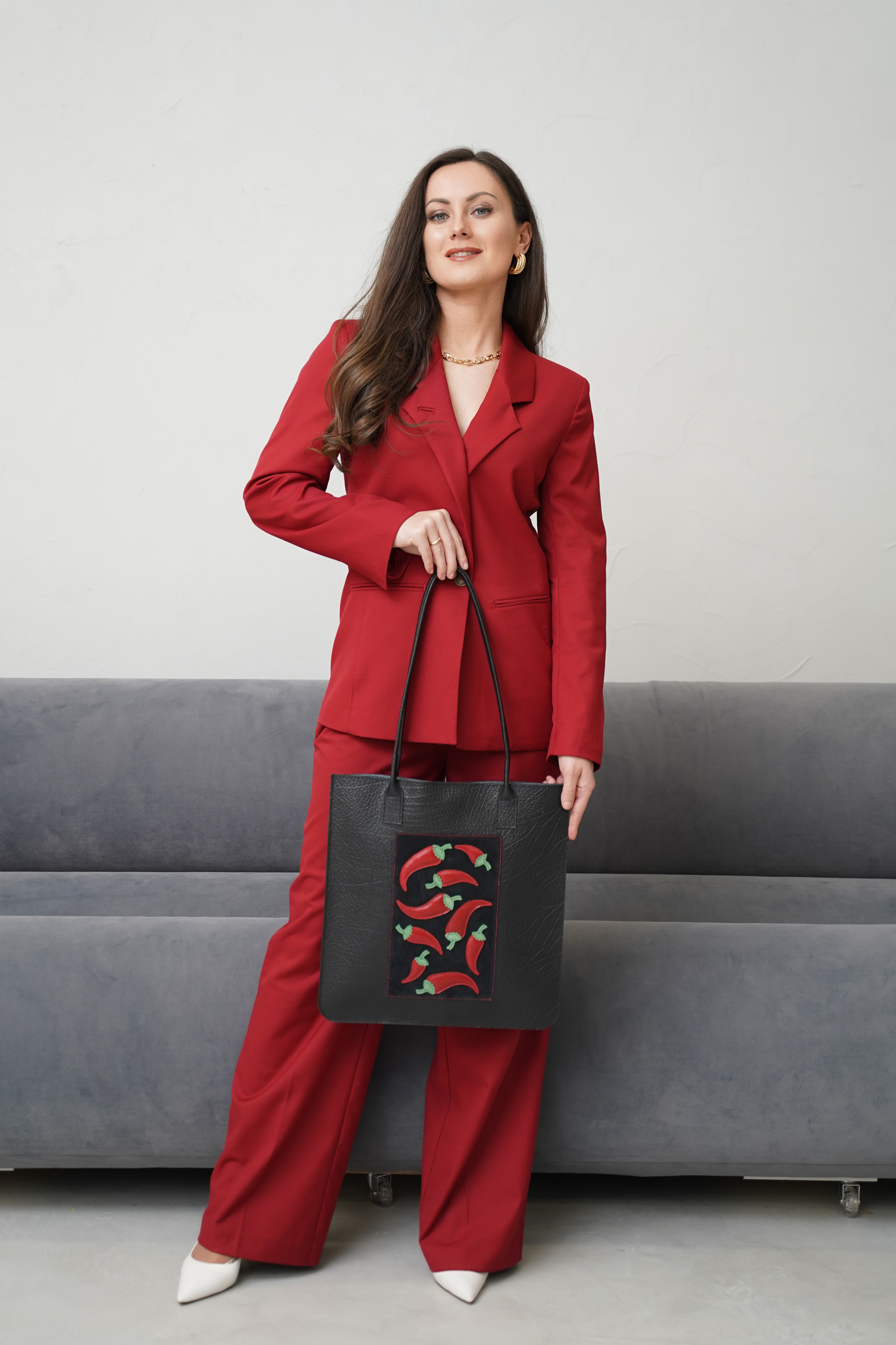 Сумка unisex / шоппер, для ноутбука, с аппликацией "Перчики" с удлиненными ручками на плечо. Сумка застегивается на кнопку и имеет одно отделение. На задней стенке расположен накладной карман 24х30 см. Внутри сумка имеет накладной карман, на кнопке.