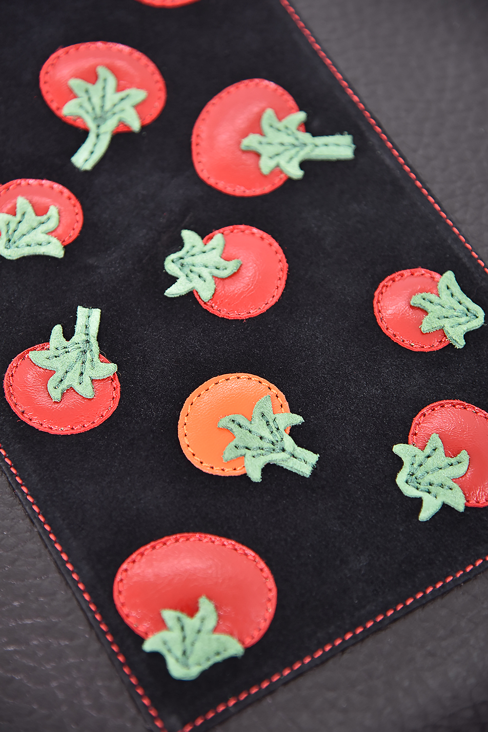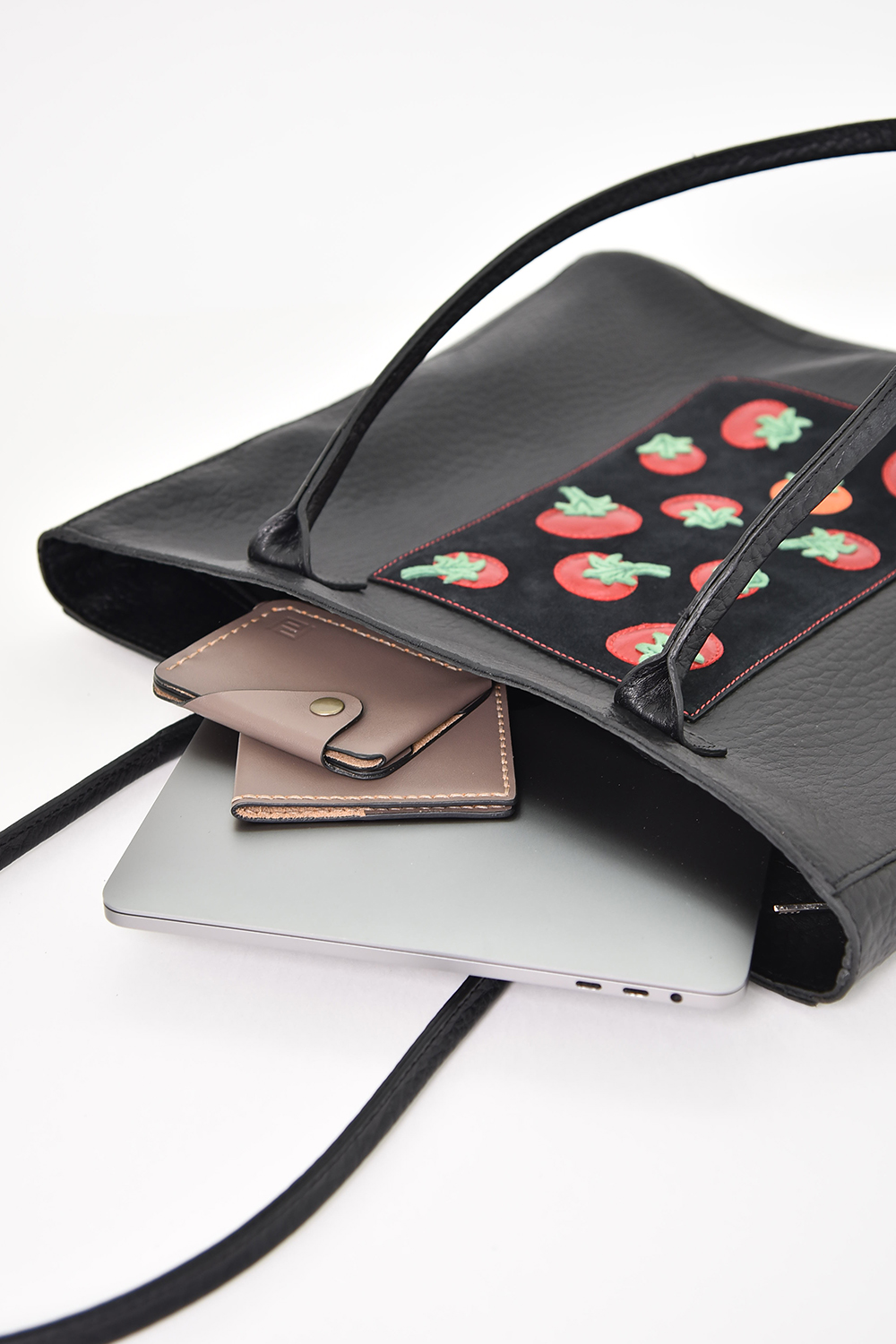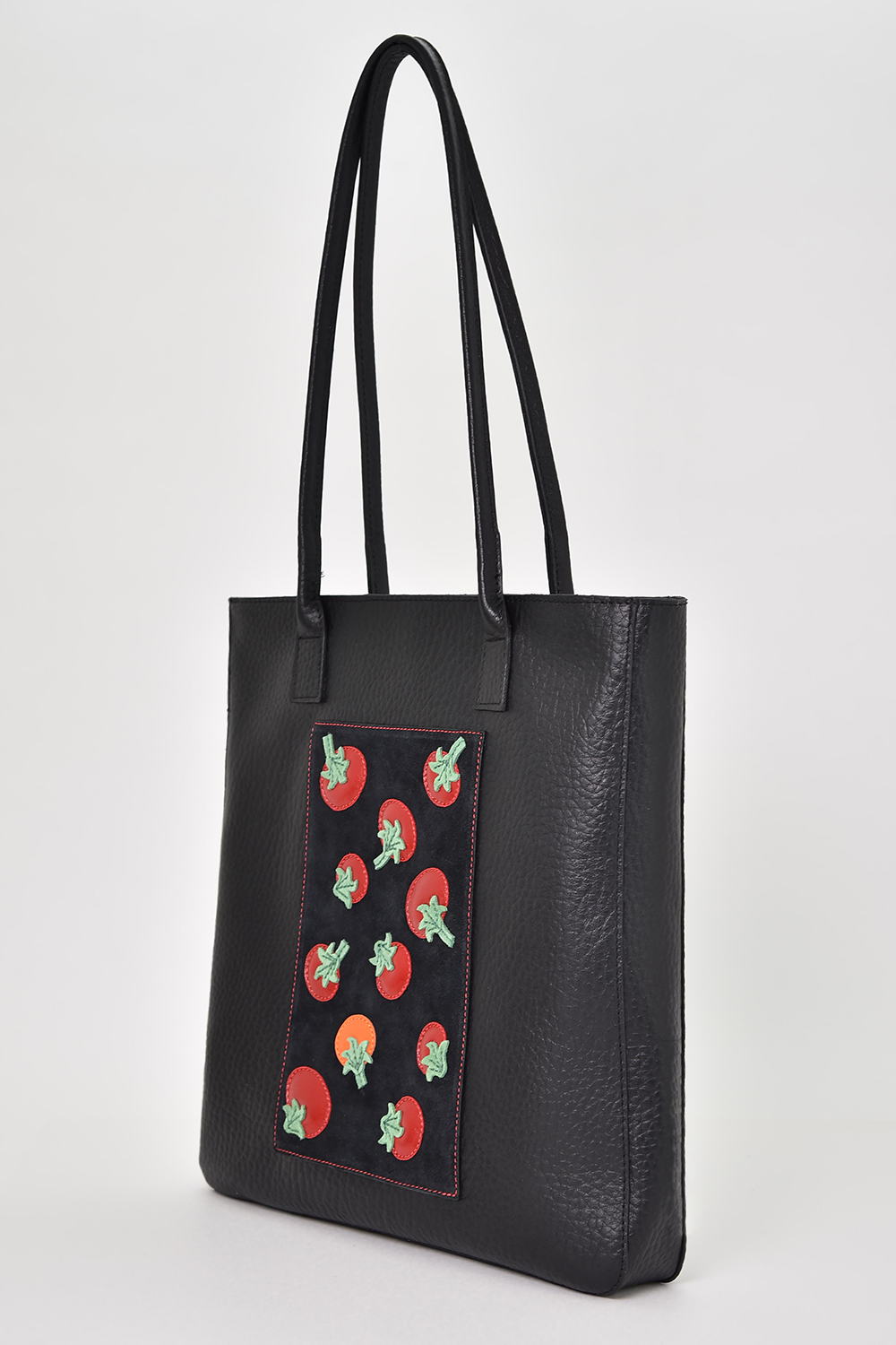 Сумка женская / шоппер, для ноутбука, с аппликацией "Помидорки" с удлиненными ручками на плечо. Сумка застегивается на молнию и имеет одно отделение. На задней стенке расположен накладной карман 24х21 см. Внутри сумка имеет накладной карман, на кнопке.