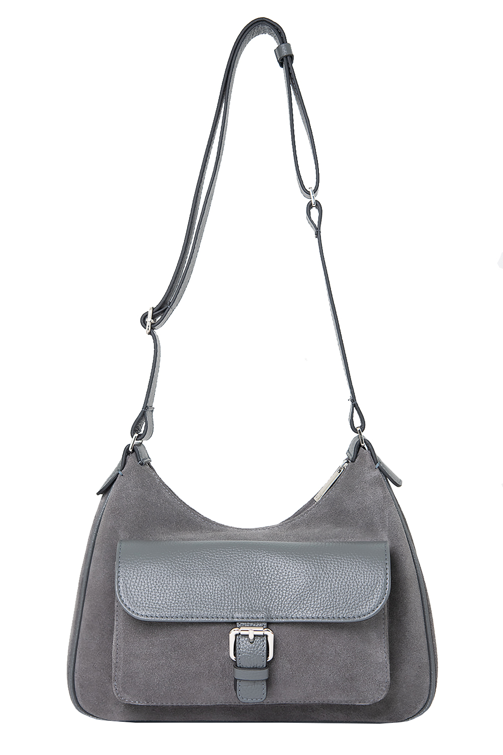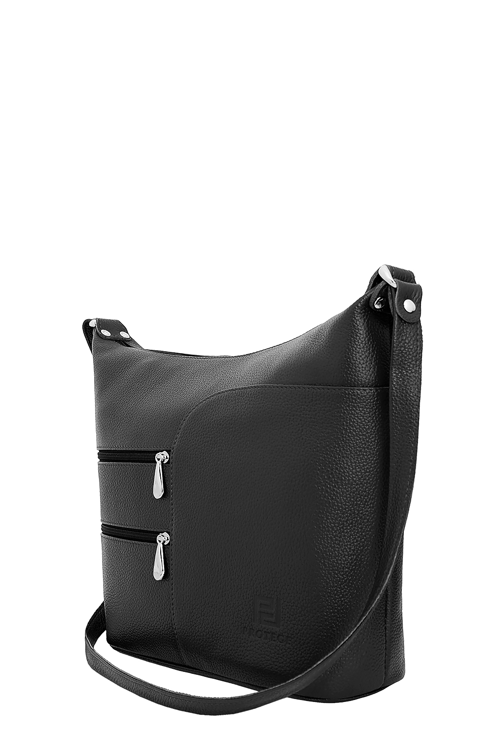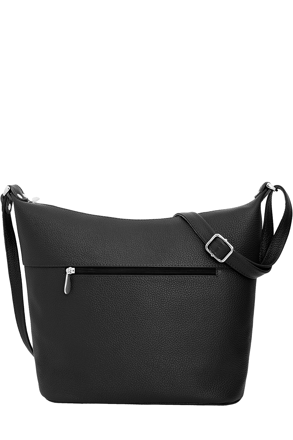 Сумка женская среднего размера с несъемным регулируемым ремнем через плечо. Сумка застегивается на молнию и имеет одно отделение. На передней стенке расположены два функциональных кармана. На задней стенке также есть карман на молнии. Сумка на подкладке. Внутри сумка имеет средник на молнии из плотного материала,карман на молнии и накладной карман для мобильного телефона и визиток.