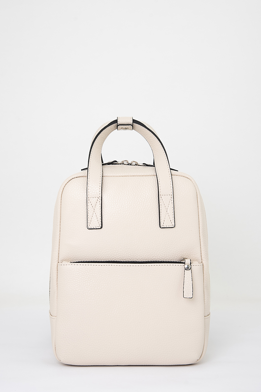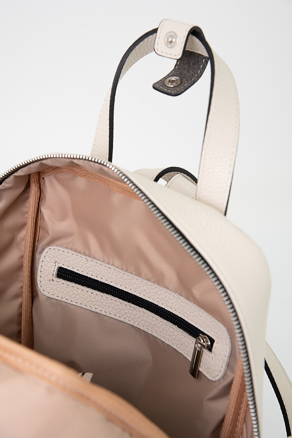Сумка-рюкзак женская среднего размера. Рюкзак застегивается на молнию и имеет одно отделение. На передней стенке расположен карман на молнии. На задней стенке также есть карман на молнии. Лямки рюкзака регулируются по длине. Сумка-рюкзак на подкладке. Внутри сумки расположен карман на молнии из плотного материала и карман на молнии.