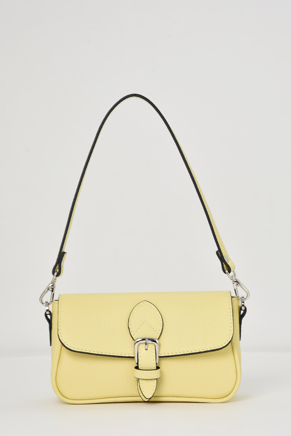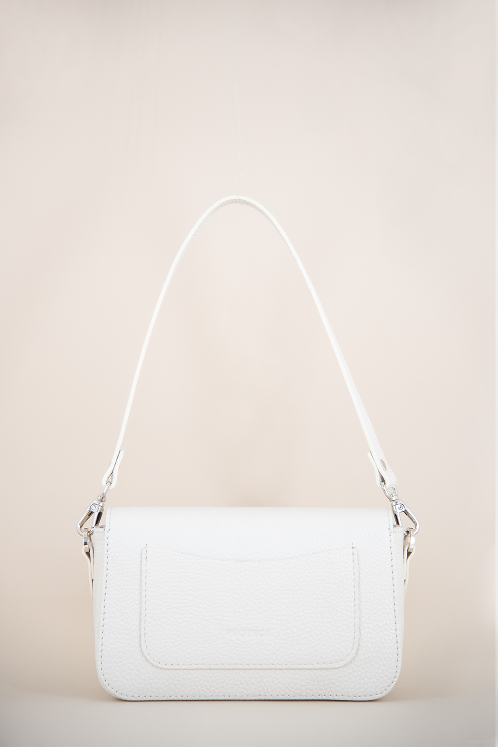 Сумка женская со съемным регулируемым ремнем через плечо и съемной ручкой. Сумка закрывается клапаном на магнитную кнопку и имеет одно отделение. На задней стенке открытый карман для банковских карт. Сумка на подкладке. Внутри сумки накладной карман.