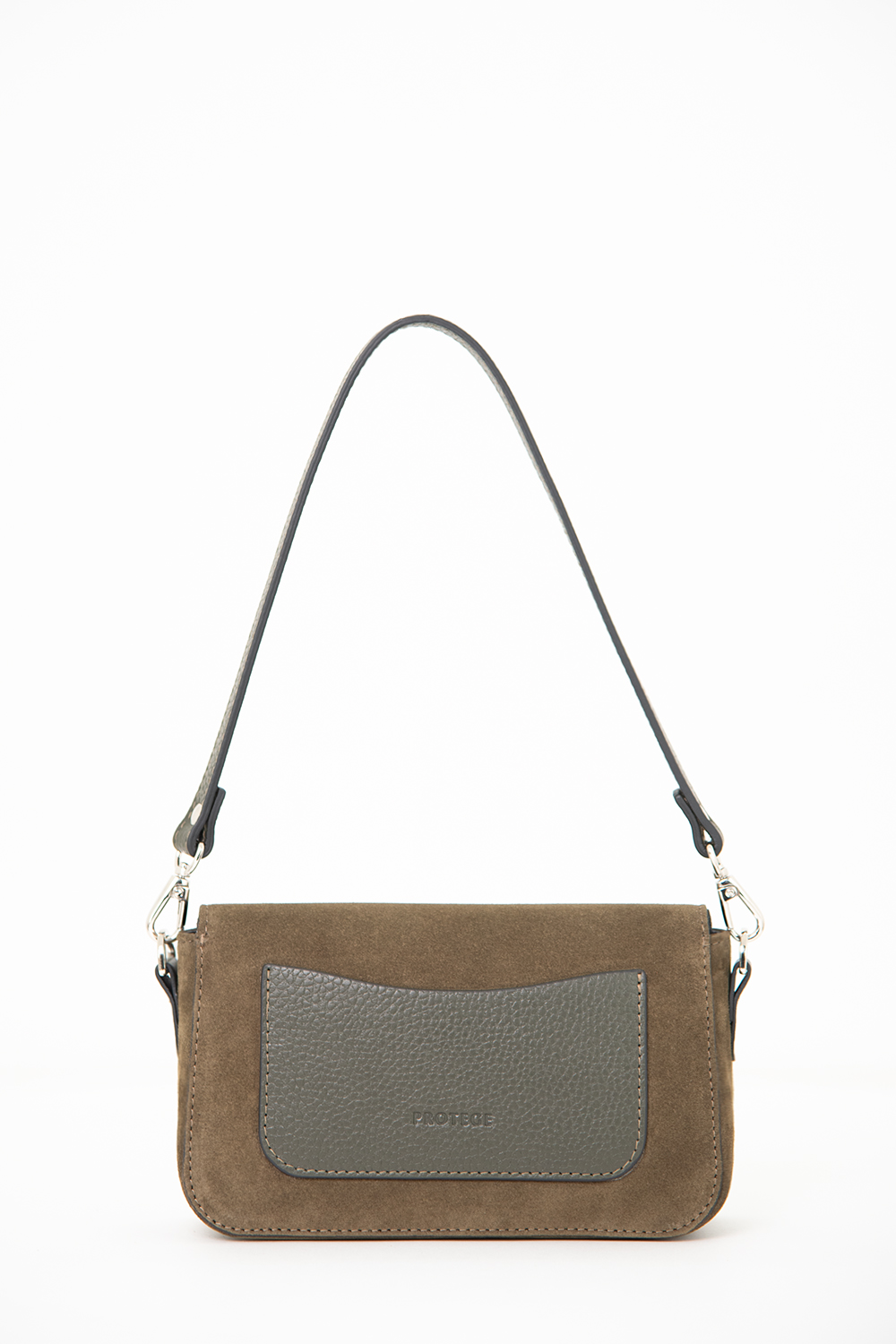 Сумка женская со съемным регулируемым ремнем через плечо и съемной ручкой. Сумка закрывается клапаном на магнитную кнопку и имеет одно отделение. На задней стенке открытый карман для банковских карт. Сумка на подкладке. Внутри сумки накладной карман.