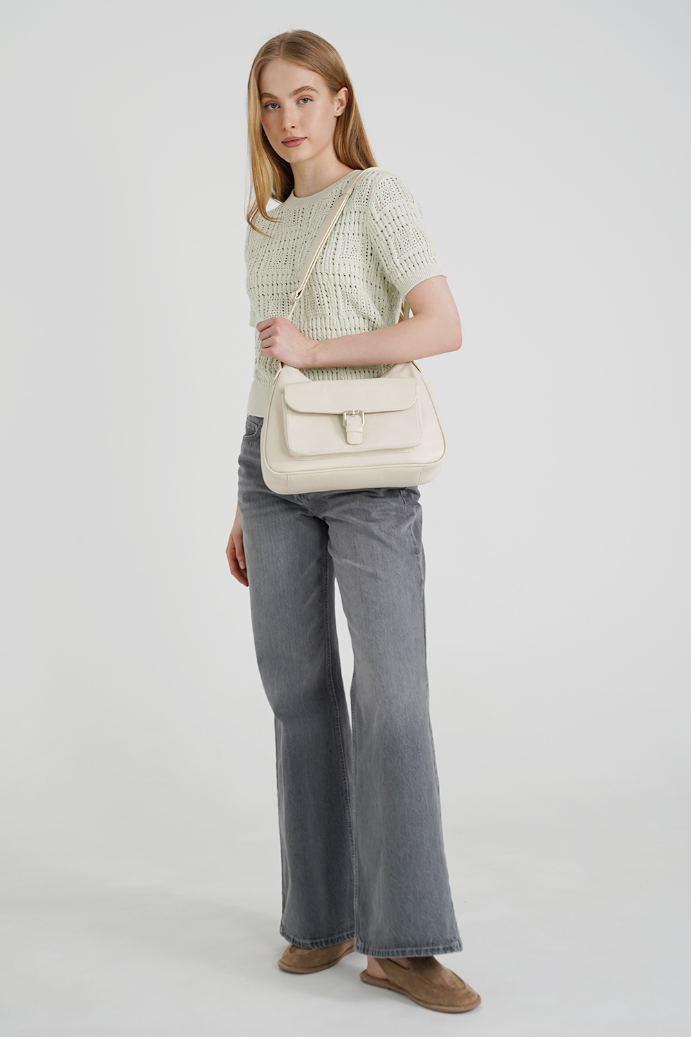 Сумка женская мягкой формы. Ручка регулируется по длине. На передней стенке изделие имеет вместительный карман, застёжка на кнопке, размер переднего кармана 23 х 14 х 3 см. Сумка застегивается на молнию и имеет одно отделение. Имеется подкладка. Внутри сумки, карман на молнии и накладной карман на молнии - "карман в кармане". Сзади карман на молнии.