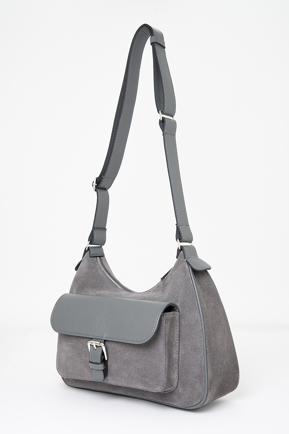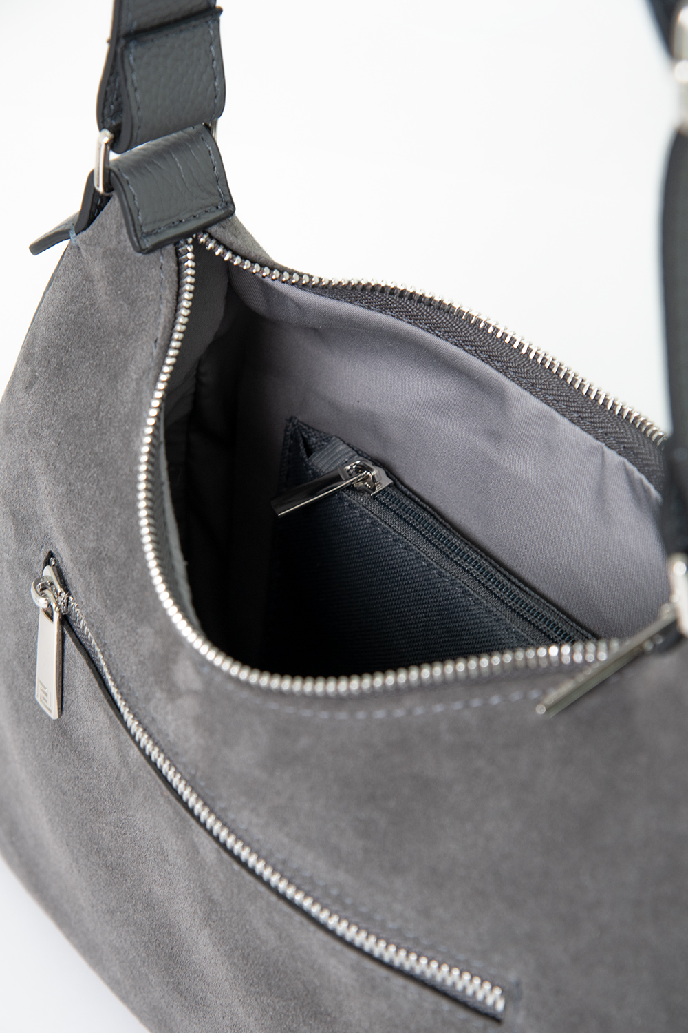 Сумка женская мягкой формы. Ручка регулируется по длине. На передней стенке изделие имеет вместительный карман, застёжка на кнопке, размер переднего кармана 23 х 14 х 3 см. Сумка застегивается на молнию и имеет одно отделение. Имеется подкладка. Внутри сумки, карман на молнии и накладной карман на молнии - "карман в кармане". Сзади карман на молнии.