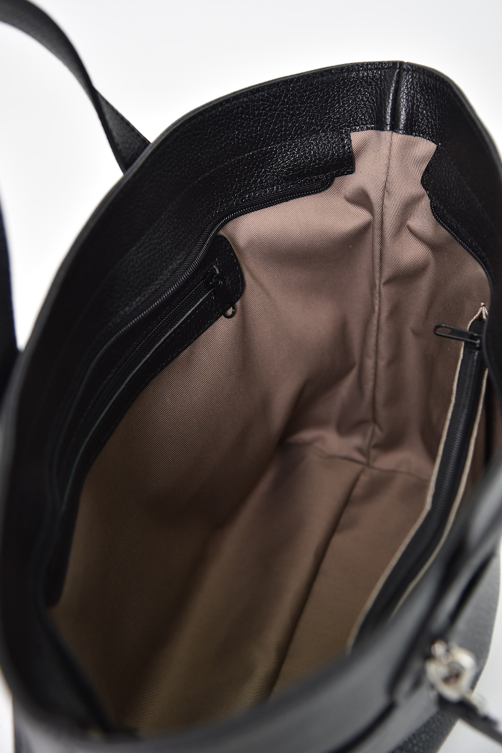 Сумка женская, с двумя съемными ремнями через плечо. Сумка застегивается на молнию и имеет одно отделение. На передней стенке расположено два кармана, на кнопке. На задней стенке расположен один карман на кнопке. Сумка на подкладке. Внутри сумка имеет карман на молнии и карман накладной "карман в кармане" на молнии, из плотного материала. Cумка имеет большой объем, в нее легко помещаются документы формата А4 . При этом удобная в носке, полужесткий каркас предотвращает помятость на документах. Удобная модель для женщин работающих с большим объемом документов.